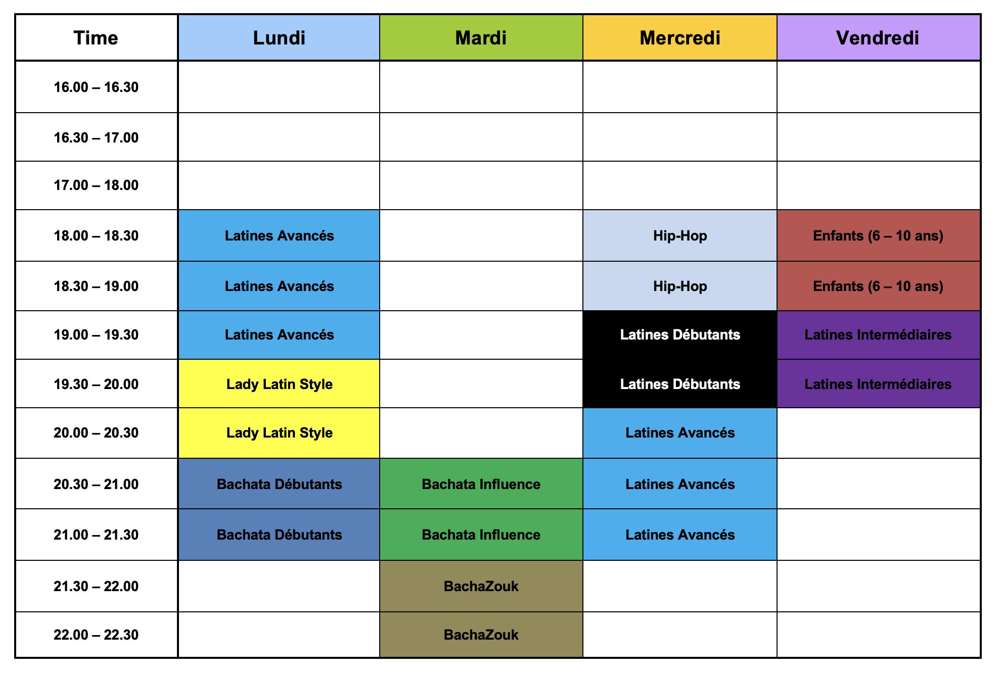 Rejoignez-nous sans engagement pour découvrir nos cours en groupe gratuitement. - Les cours privés sont disponibles du lundi au samedi, de 10h à 22h, en dehors des cours de groupe ci-dessus.