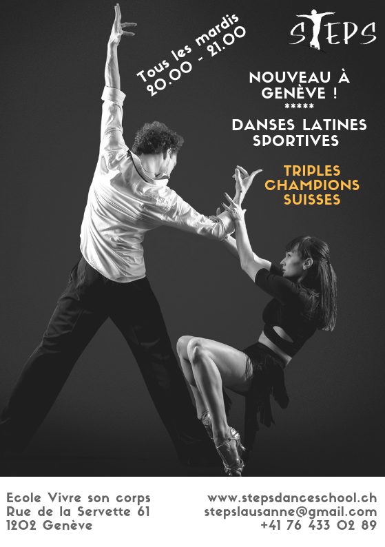 Школа Steps Dance School, основаннная в Лозанне с 2013 года, идеально подходит для тех, кто ищет уникальную школу, где вас научат технике и подаче танцев: Ча-ча-ча, Самба, Румба, Пасадобль, Джайв; Медленный Вальс, Квикстеп, Венский Вальс, Танго и Медленный Фокстрот.